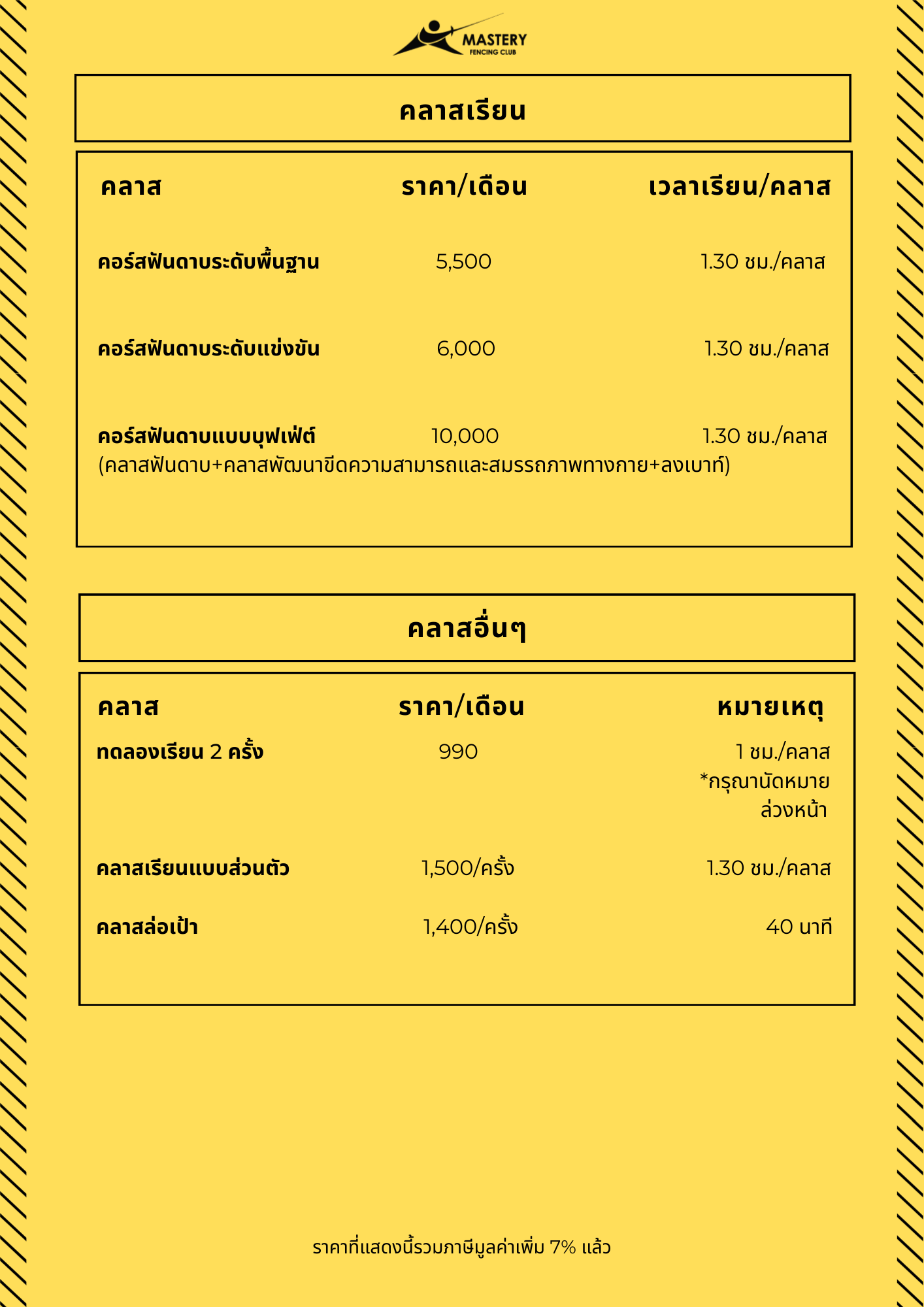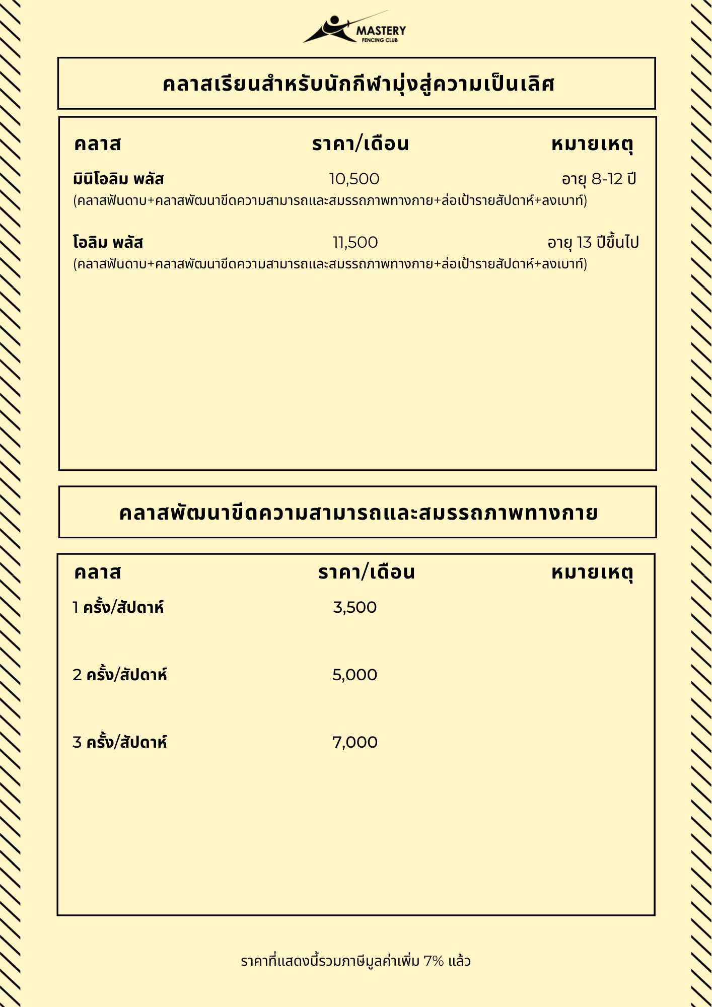- รวมการฝึกตัวต่อตัว (Personal Lesson) 1 ครั้ง/สัปดาห์