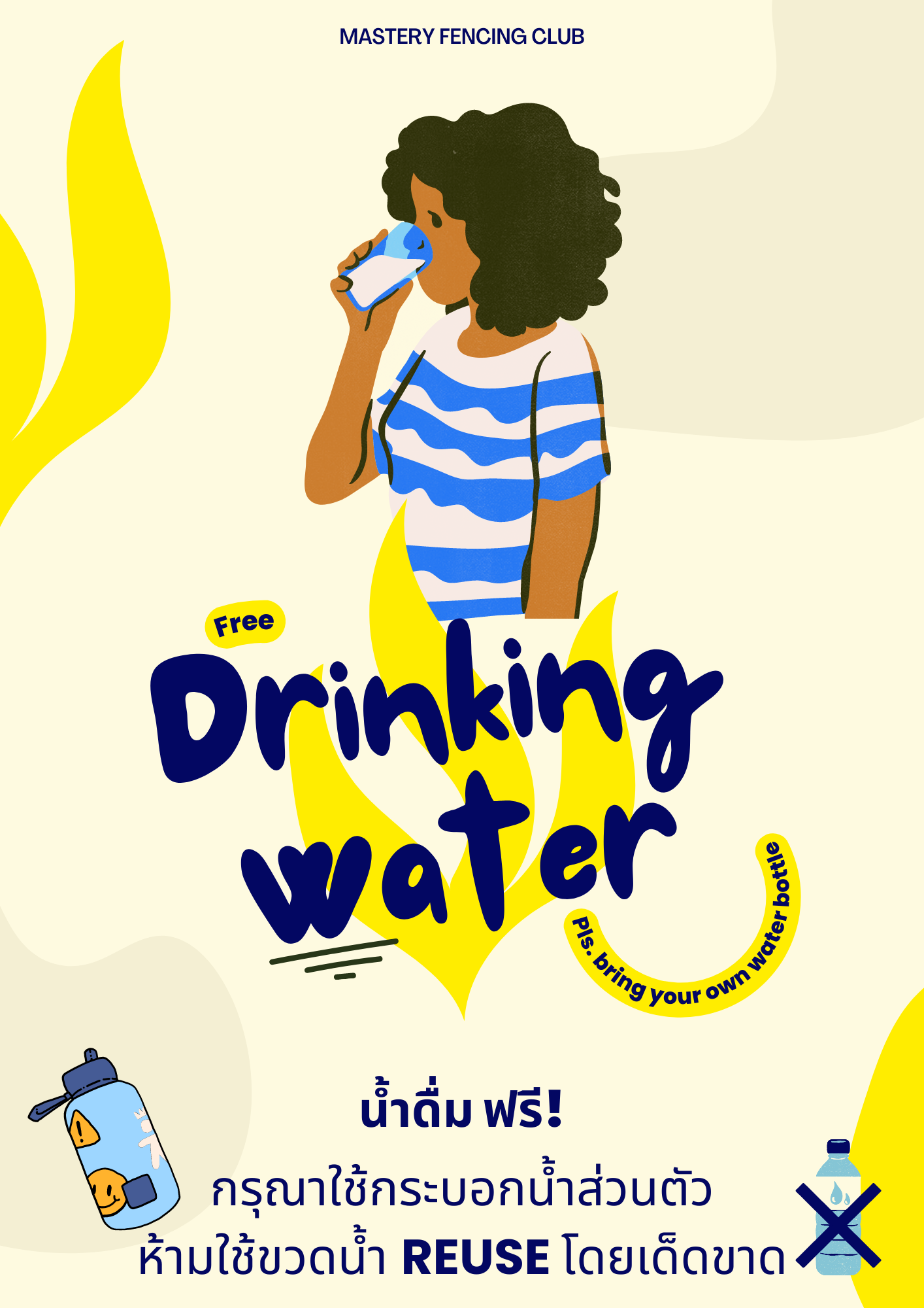 2.นักกีฬาจะต้องนำกระบอกน้ำส่วนตัวมาเอง ไม่อนุญาติให้ใช้ ขวดน้ำพลาสติก REUSE เพื่อความสะอาด